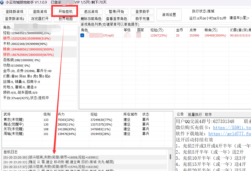 登录成功后要点 “ 开始挂机 ” 软件才开始工作。